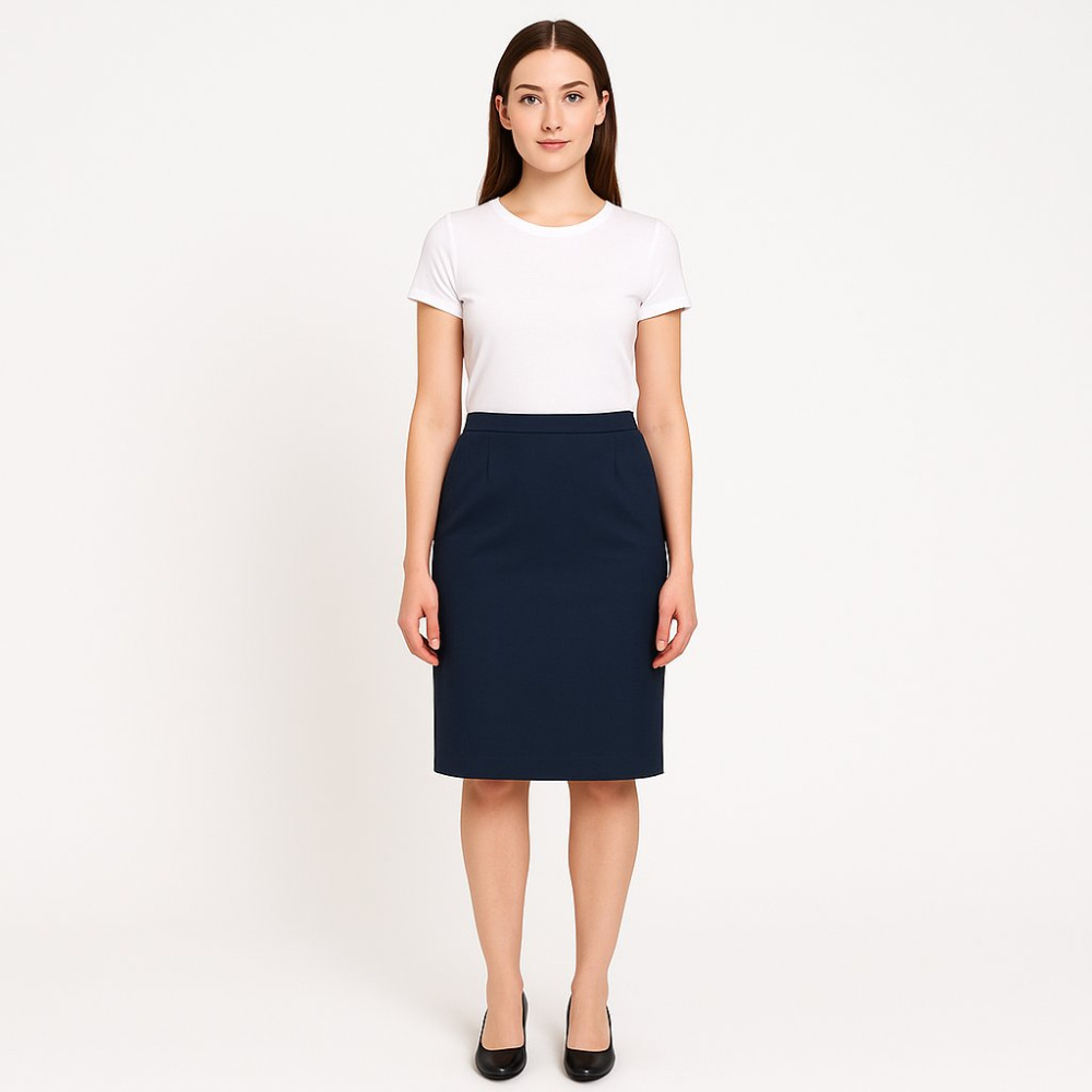 Юбка Tu Woman тёмно-синего цвета, прямого силуэта и длины до колена. Подойдёт для офиса и повседневных образов, легко сочетается с рубашками и базовыми футболками. Практичный плюс — ткань со стрейчем, поэтому юбка комфортно садится и не стесняет движений.