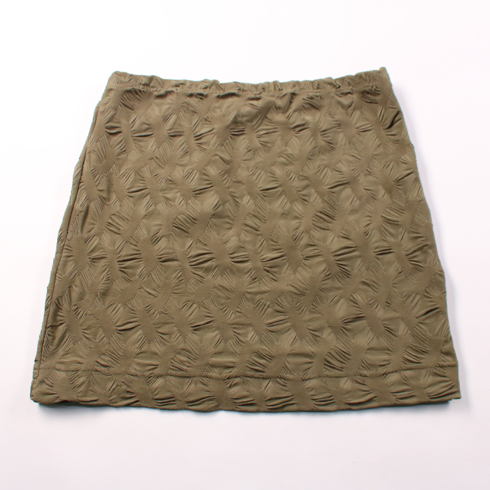 Юбка H&M прямого кроя из фактурного полиэстера в оттенке хаки. Подойдёт для повседневных летних образов и в офис с базовыми топами и рубашками. Материал практически не мнётся и быстро сохнет.