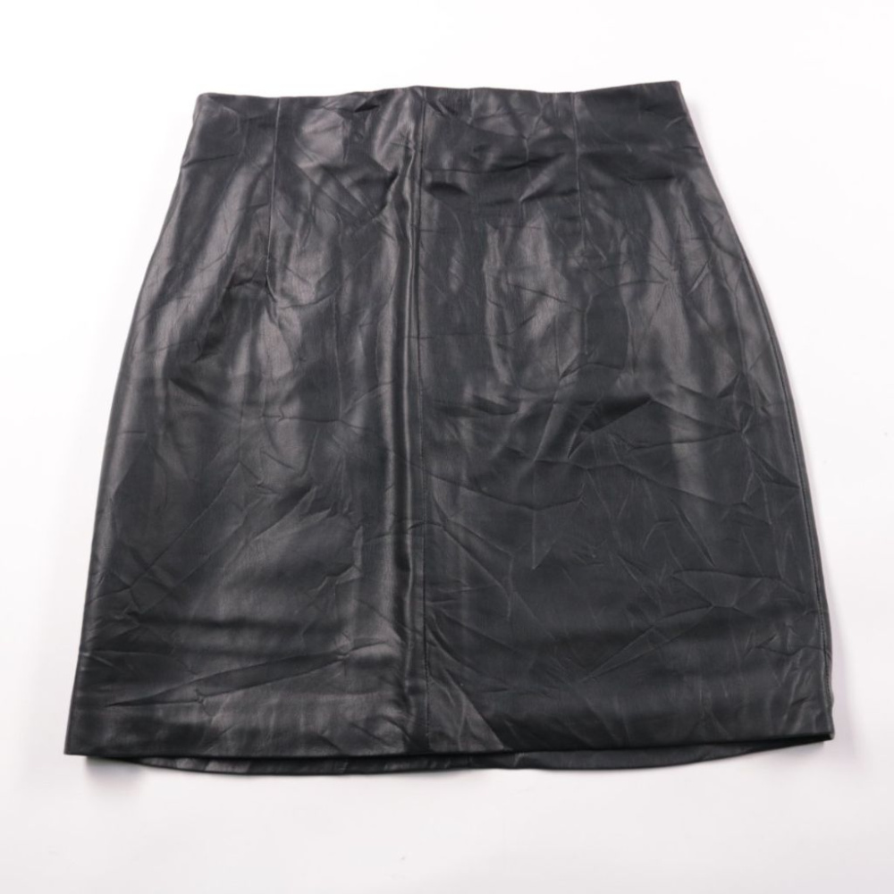 Юбка H&M из искусственной кожи в чёрном цвете, прямого силуэта и с высокой посадкой. Подойдёт для повседневных образов и вечерних выходов с рубашкой, водолазкой или жакетом. Материал легко протирается и практичен в уходе.