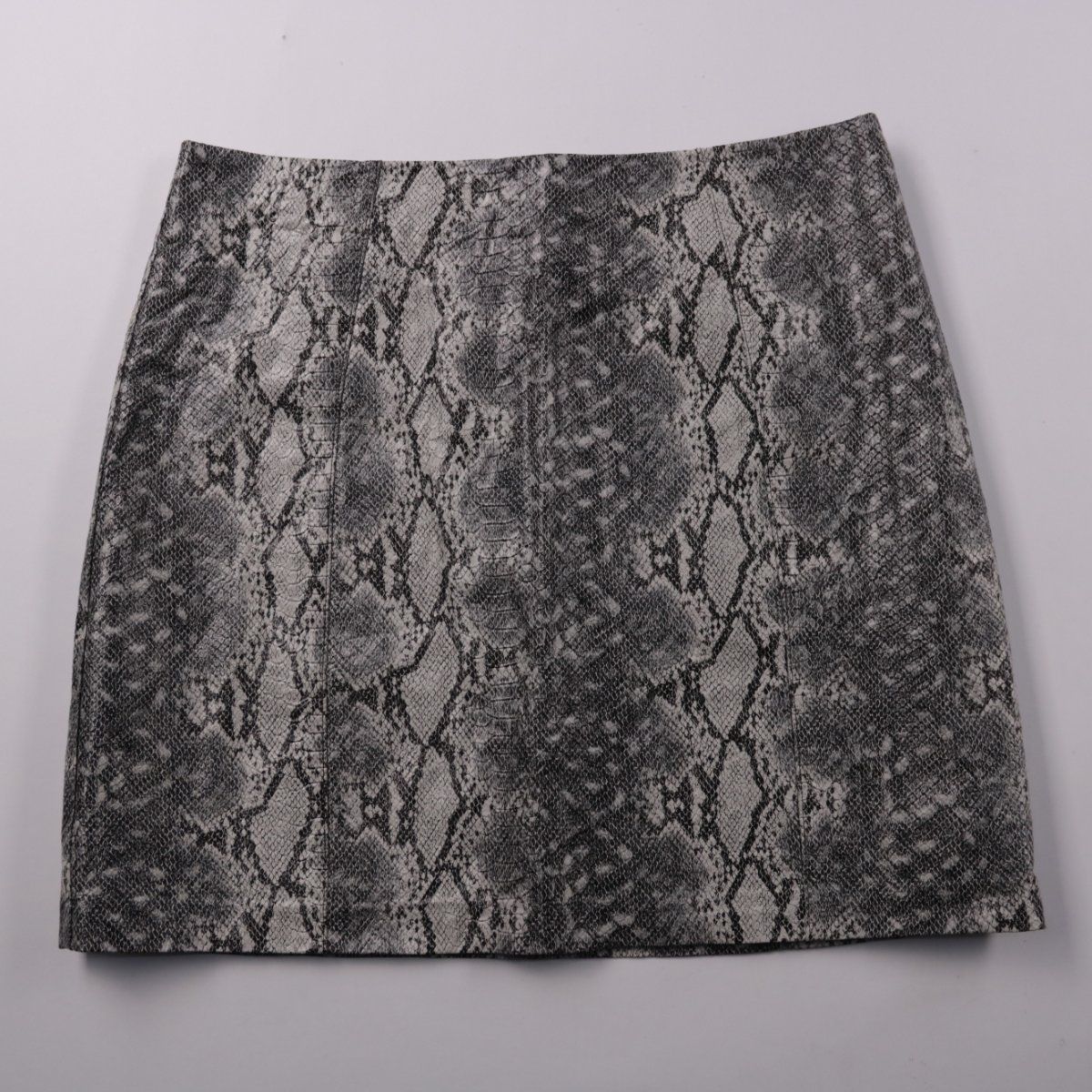 Юбка New Look с анималистичным принтом под змеиную кожу и прямым мини-силуэтом. Подойдёт для повседневных образов и вечерних выходов с однотонным верхом и обувью на каблуке. Практичное преимущество — есть подкладка, поэтому ткань меньше просвечивает и комфортнее в носке.