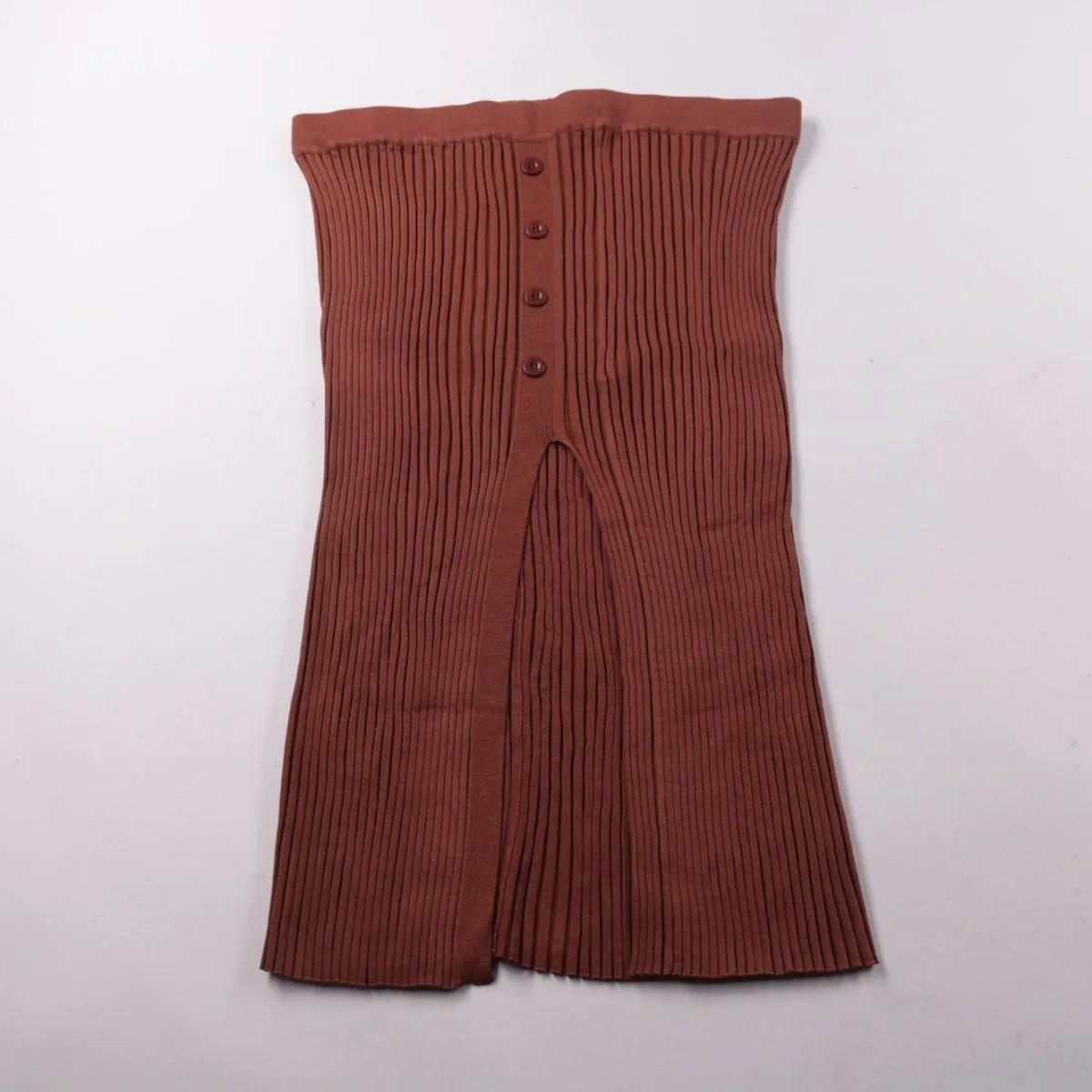 Трикотажная юбка CIDER в рубчик с застёжкой на пуговицы спереди и разрезом. Подойдёт для повседневных образов в прохладную погоду. Эластичный материал хорошо тянется и комфортно садится по фигуре.